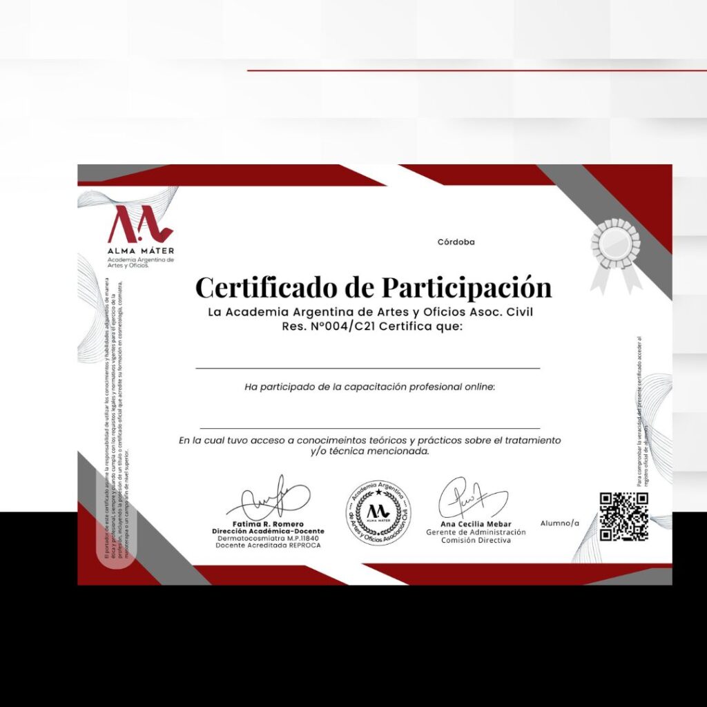 Certificate en las áreas principales de la Estética Facial, Corporal y Masoterapia: Impulsá tu currículum, tu credibilidad y tu carrera profesional. Como alumno podrás rendir un examen y obtener un certificado de participación a tu nombre.